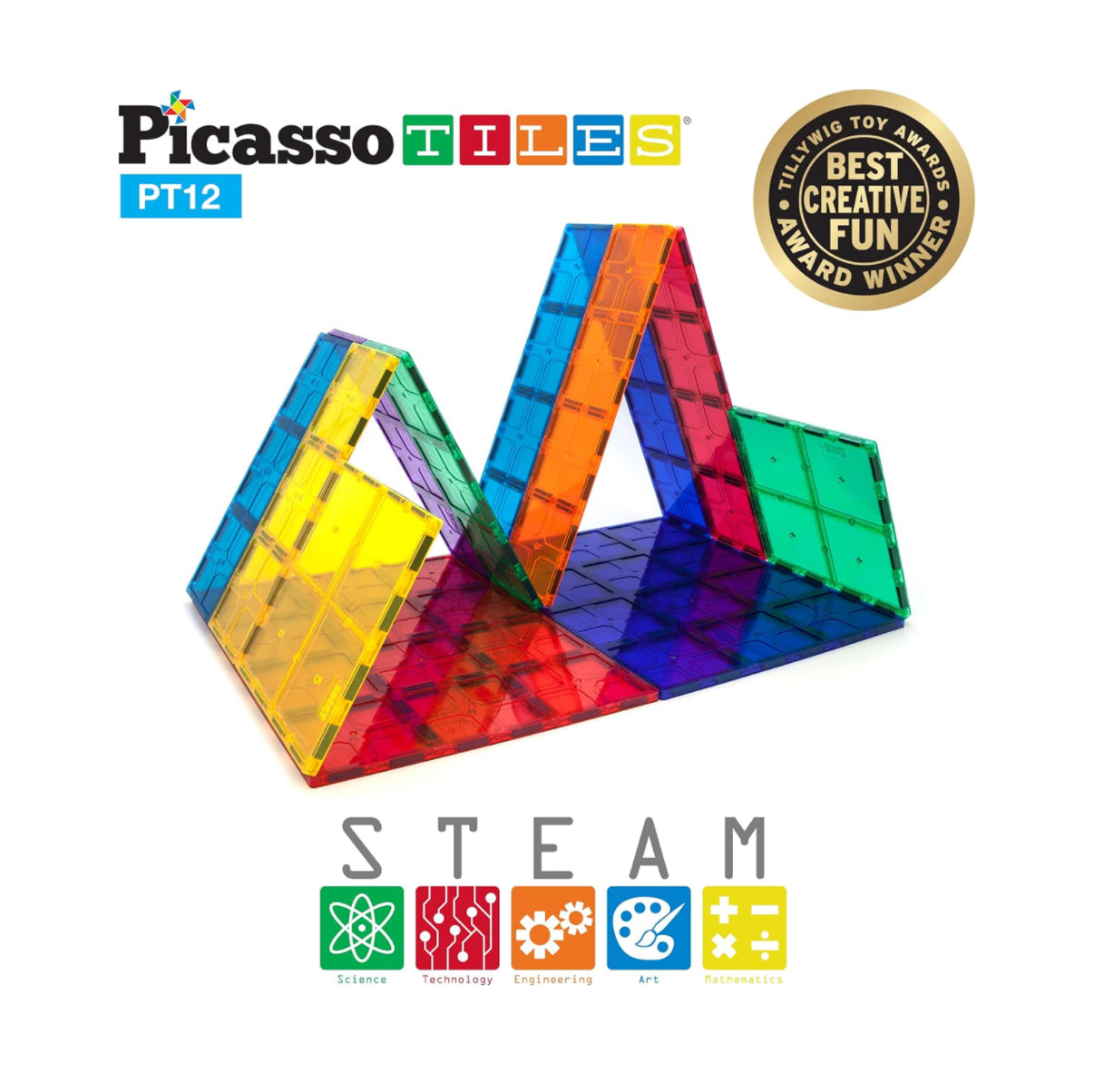Unleash creativity with the Picasso Tiles 12-piece magnetic tile set (SKU: PT12). Designed for maximum play and learning, these large connected magnet tiles offer endless building possibilities without the hassle of connecting individual pieces. Perfect for kids and educators, this set provides a spacious 540 square inches of magnetic tile coverage, equivalent to 60 regular magnet squares. Build solo or combine with other Picasso Tiles sets for larger, more intricate creations!