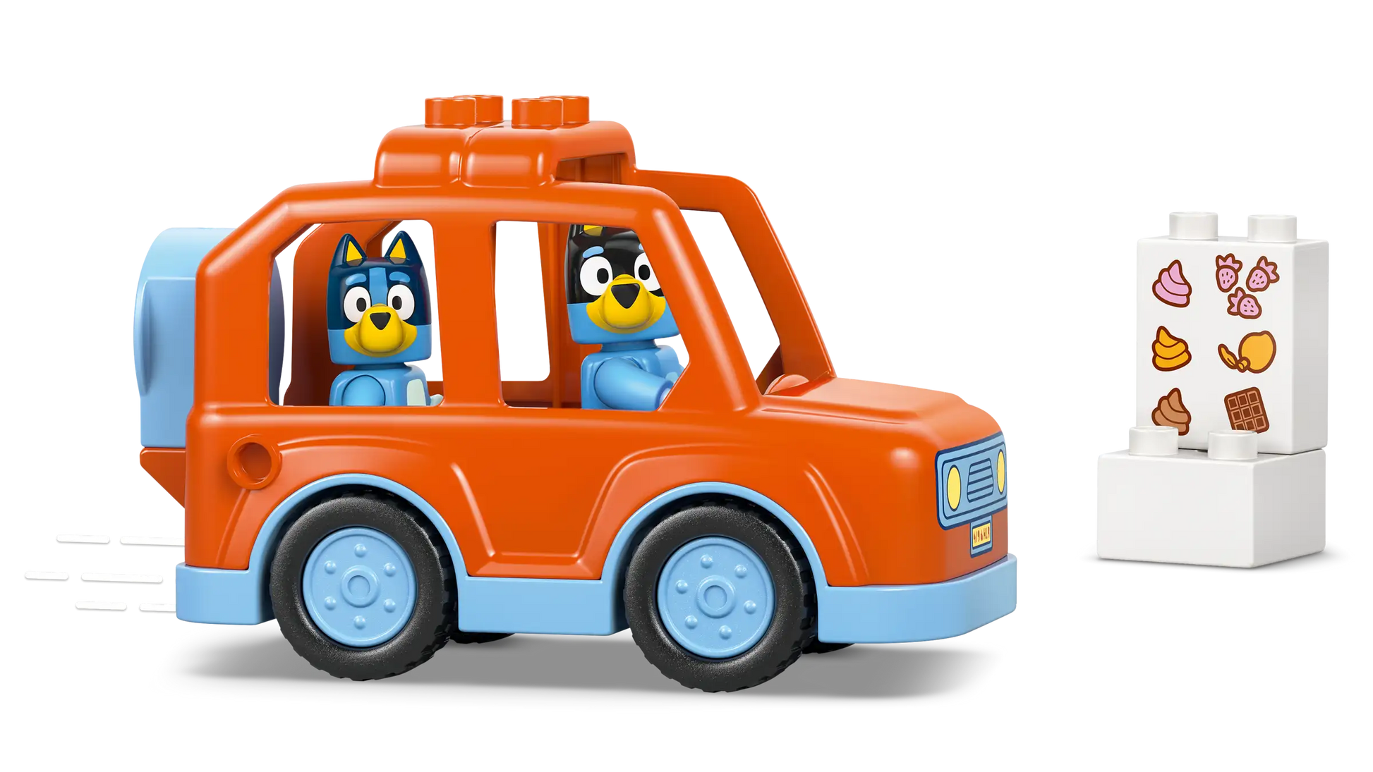 Ice cream stand and vehicle playset inspired by the Bluey TV show – Transport preschoolers to the fun world of the Heeler family with the LEGO® DUPLO® Bluey Ice Cream Trip with Bluey toddler toy