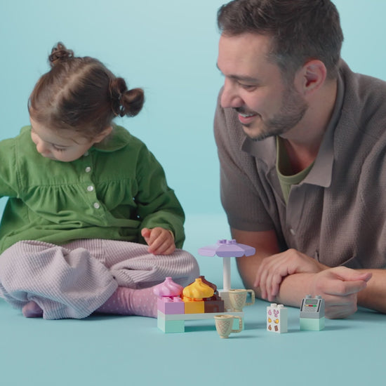 Toddlers learn to recognize numbers by choosing how many scoops they want and stacking the right number of bricks. They’ll develop color-sorting skills pairing the toy scoops with the flavors and practice their fine motor skills by attaching the ice cream to the cones. Through pretend play, LEGO DUPLO Bluey sets let preschoolers and their families not only act out fun everyday activities but also help them understand how these activities make them feel. Contains 22 pieces.