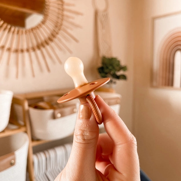 Good news! Our Itzy Soother Natural Rubber Pacifiers are now available in size 6-18 months! Featuring a slightly elongated natural rubber nipple.