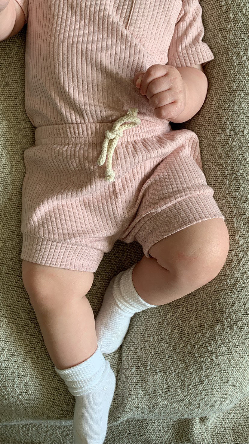 Ribbed short-sleeve & shorts set - Blush