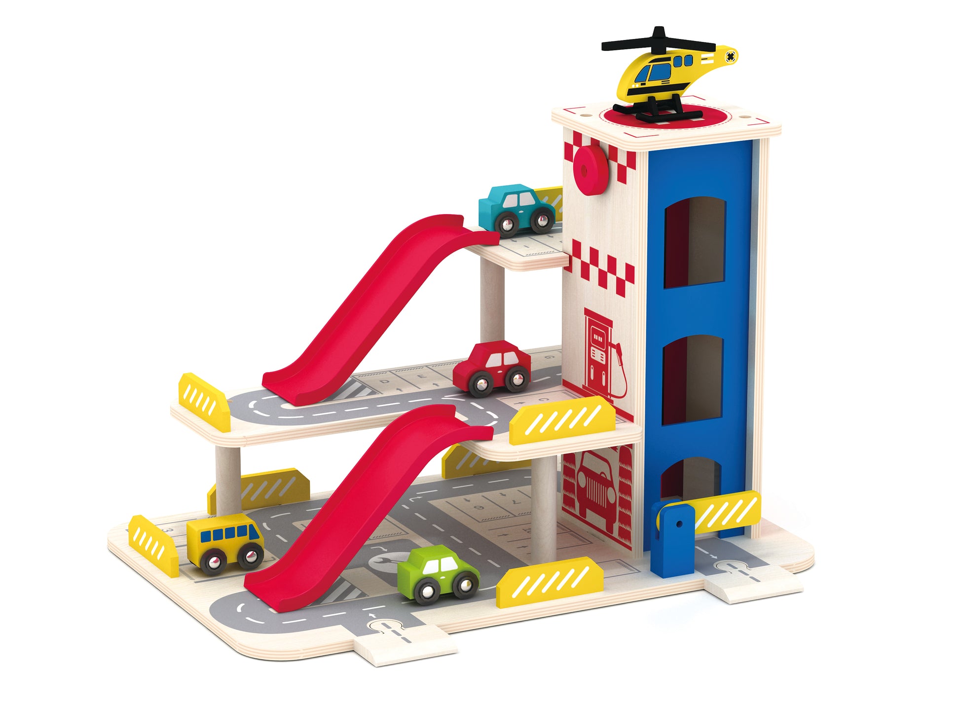 Get ready for endless adventures with our Wooden Parking Garage! This multi-level playset is a dream come true for little car lovers—featuring ramps, parking spaces, an elevator, gas station, and even a helipad on top. Whether they're fueling up, parking cars, or flying off in the helicopter, there's a new story around every corner.